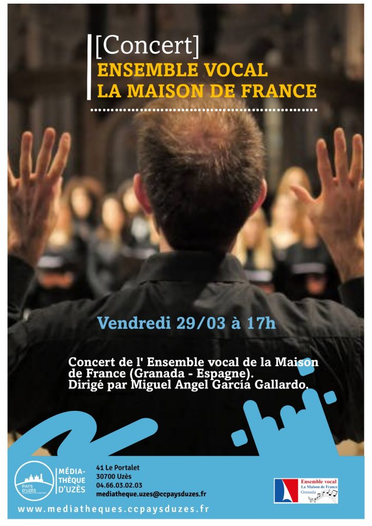 29 de marzo. Concierto en la Mediateca de Uzés, municipio de la Occitania a unos 40 kilómetros de Avignon.